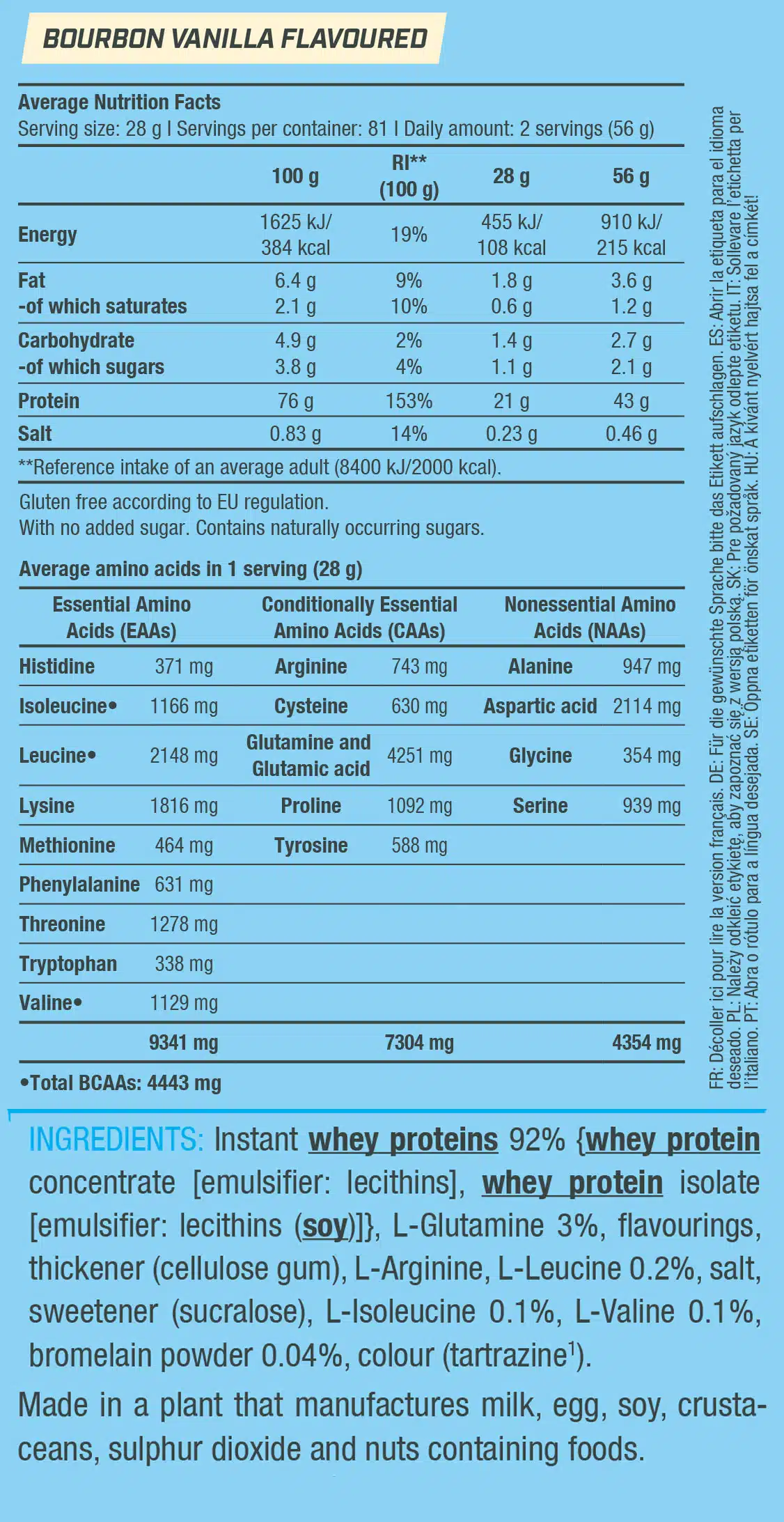 • Με προσθήκη BCAA, γλουταμίνης και αργινίνης