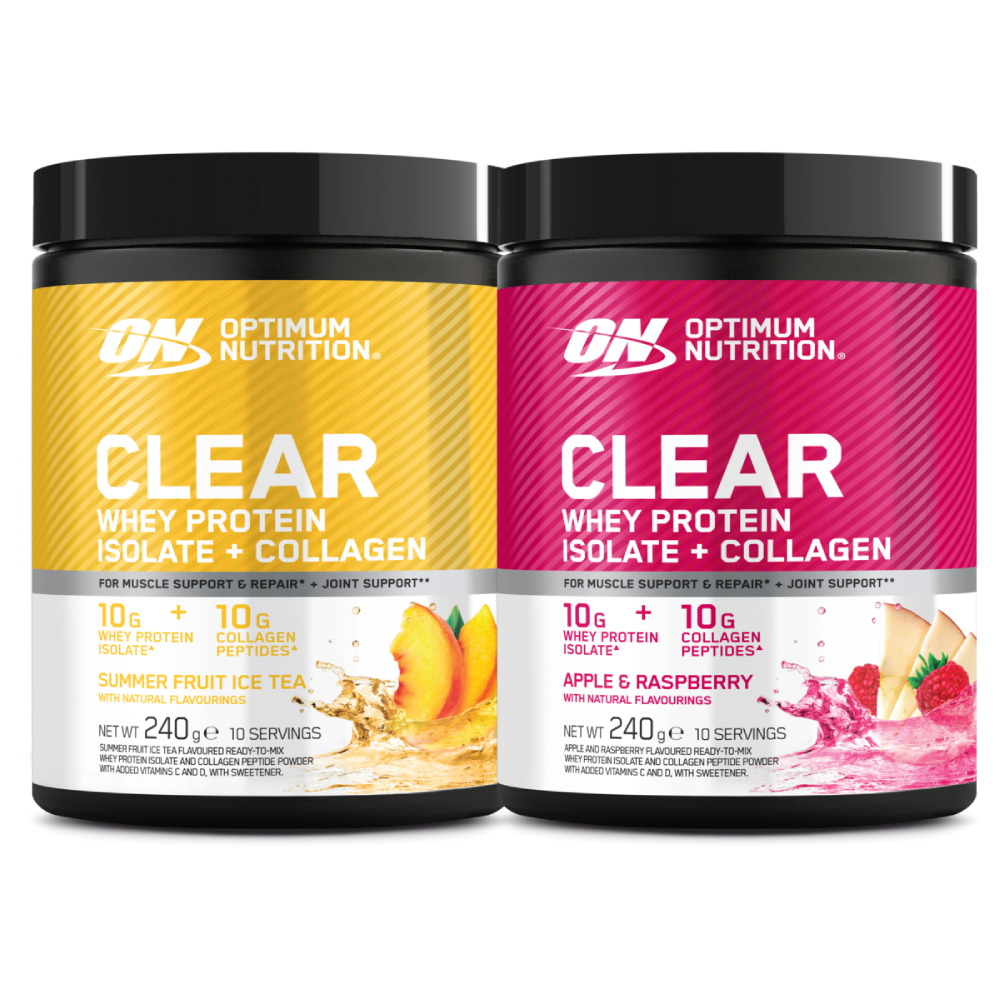 Το Clear Whey + Collagen ξεχωρίζει με μια διπλή πρωτεϊνική φόρμουλα σχεδιασμένη για την υποστήριξη των μυών και των αρθρώσεων*. Οι ελαφριές και δροσιστικές γεύσεις του παρέχουν μια ευχάριστη εναλλακτική λύση στα παραδοσιακά πρωτεϊνικά ροφήματα, καθιστώντας το μια ευχάριστη προσθήκη στην καθημερινή σας ρουτίνα. Είτε στοχεύετε στην ανάπτυξη μυών, είτε στην υποστήριξη της υγείας των αρθρώσεων, είτε απλώς στην αύξηση της πρόσληψης πρωτεΐνης, αυτό το προϊόν προσφέρει ολοκληρωμένα οφέλη σε μια βολική μορφή.