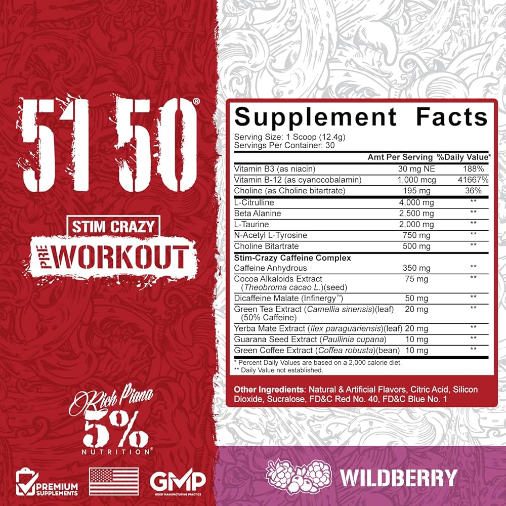 ΕΝΤΑΣΗ & ΟΡΜΗ: Το σύμπλεγμα καφεΐνης Stim-Crazy παρέχει 400 mg καφεΐνης που προέρχεται από 7 πηγές, συμπεριλαμβανομένης της Dicaffeine Malate με χρονική αποδέσμευση και εκχυλίσματα από καφέ, πράσινο τσάι, yerba mate, γκουαράνα και πράσινο καφέ. Κυριαρχήστε σε κάθε προπόνηση!