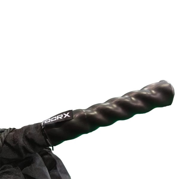 Σχοινί Battle Rope με επένδυση από συνθετικό υλικό. Κάθε σχοινί πολυαιθυλενίου είναι τυλιγμένο με ένα προστατευτικό περίβλημα από συνθετικό υλικό και πρόσθετα πλαστικά προστατευτικά άκρα για μέγιστη αντοχή και ανθεκτικότητα.