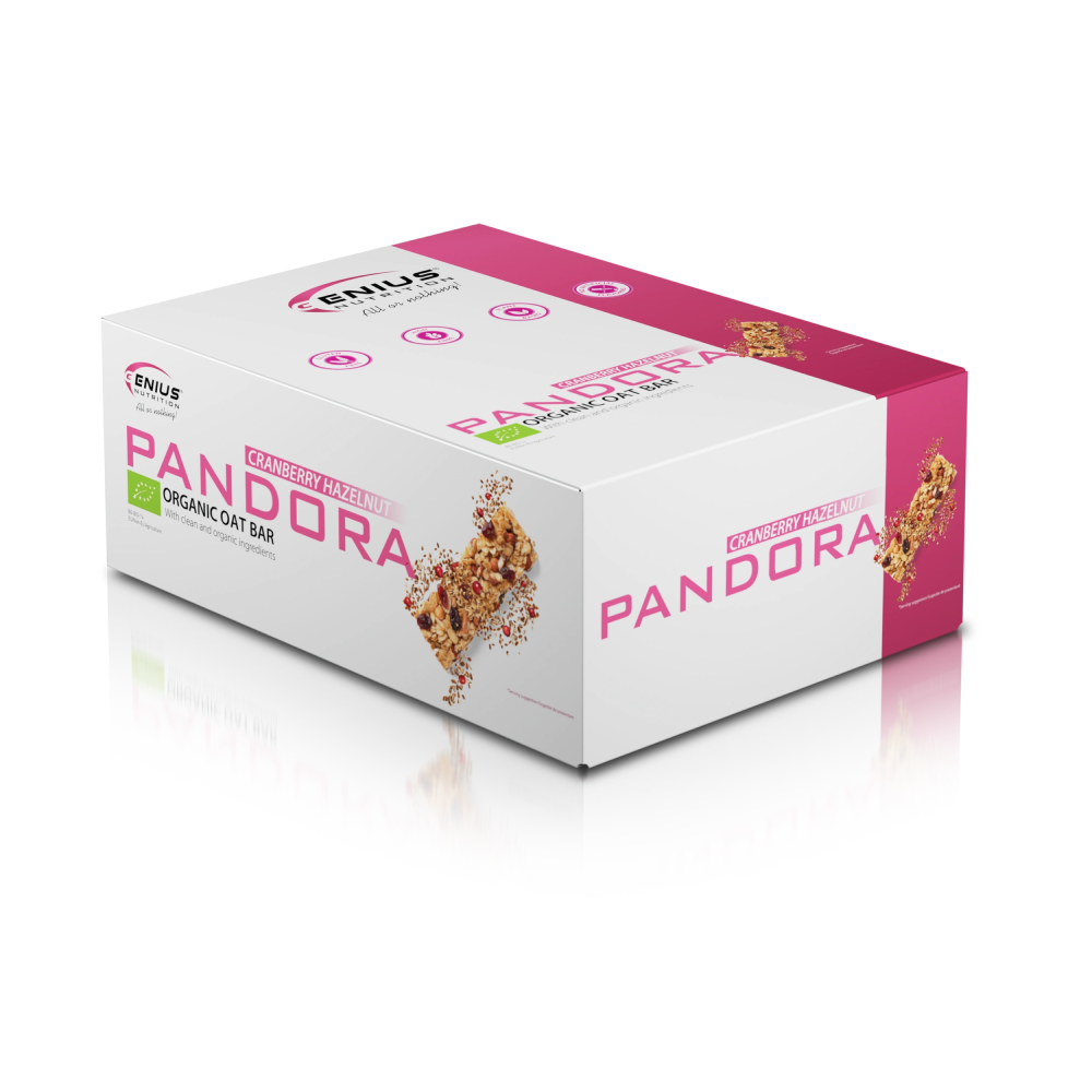 Η μπάρα βρώμης PANDORA BIO με φουντούκια και κράνμπερι από την Genius Nutrition® είναι το ιδανικό προϊόν για όσους αναζητούν μια νόστιμη και θρεπτική μπάρα φτιαγμένη από 100% βιολογικά και χωρίς γλουτένη συστατικά. Με ενεργειακή αξία μόλις 225 kcal ανά 50g, αυτή η μπάρα είναι ιδανική για ένα γρήγορο και ισορροπημένο σνακ, προσφέροντας τον τέλειο συνδυασμό υδατανθράκων, φυτικών ινών και υγιεινών λιπαρών.
