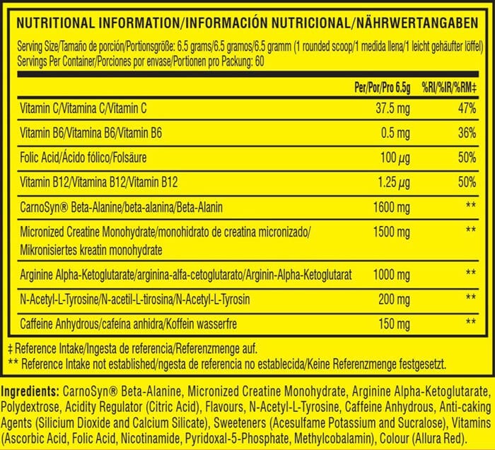 1 δοσομετρητής (6.5g) με 150-200ml νερό 20-30 λεπτά πριν την προπόνηση.