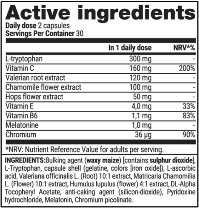 Αυτό το συμπλήρωμα βοηθά στη χαλάρωση και τη διαχείριση του στρες, διευκολύνοντας τον ύπνο και τη διατήρηση του ύπνου, εξασφαλίζοντας μια αναζωογονητική εμπειρία για τους καταναλωτές που αντιμετωπίζουν έναν αγχωτικό τρόπο ζωής.