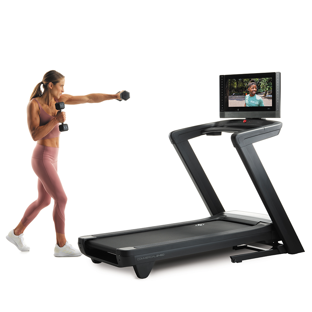 Ο διάδρομος γυμναστικής NordicTrack Commercial 2450 new διαθέτει την τεχνολογική υπεροχή που χρειάζεστε για να ακολουθήσετε με ασφάλεια και αποτελεσματικότητα τις συμβουλές των ειδικών του fitness: οθόνη αφής, καθοδική κλίση, πολύ άνετη επιφάνεια τρεξίματος, αυτόματο χειρισμό ταχύτητας και κλίσης από το πρόγραμμα iFIT που παρακολουθείτε.