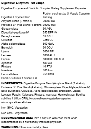 Το Doctor’s Best Digestive Enzymes είναι ένα μοναδικά σχεδιασμένο, πλήρους φάσματος μείγμα πεπτικών ενζύμων υψηλής ισχύος, που δημιουργήθηκε για να συμπληρώνει και να υποστηρίζει τις πεπτικές ικανότητες του σώματος. Κάθε κάψουλα παρέχει στον οργανισμό ένζυμα σχεδιασμένα για να βοηθούν βέλτιστα στην πέψη των λιπών, των πρωτεϊνών και των υδατανθράκων που υπάρχουν στα μαγειρεμένα και ωμά τρόφιμα. Η φόρμουλα παρέχει την πρόσθετη υποστήριξη της άλφα-γαλακτοσιδάσης και της βήτα-γλυκανάσης για τη διάσπαση των λαχανικών, των φασολιών και των δημητριακών, και ένζυμα όπως η γλυκοαμυλάση και η ιμβερτάση για να βοηθούν στην πέψη των σακχάρων. Επιπλέον, αυτή η πλήρης φόρμουλα περιέχει φιλικά βακτήρια για να προάγει με μοναδικό τρόπο τη βέλτιστη εντερική υγεία.