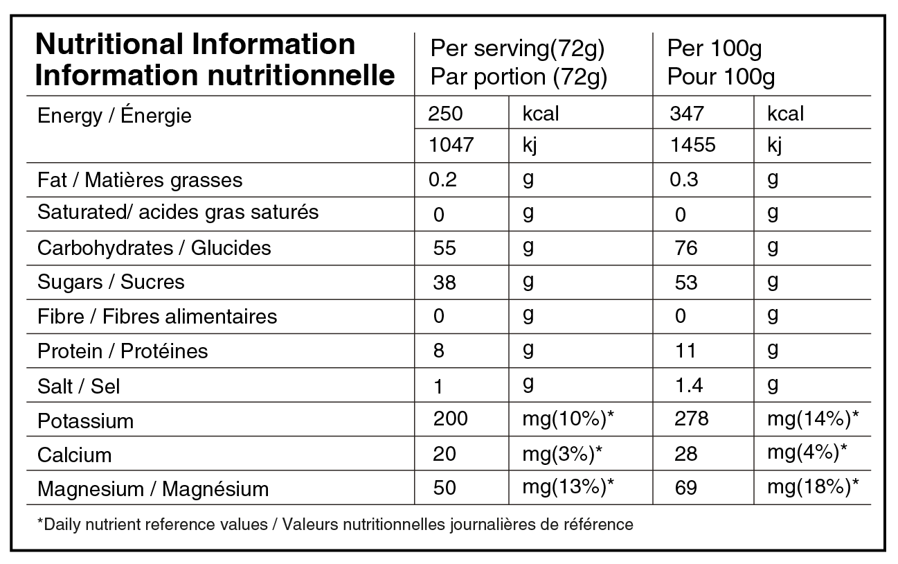 - 650 mg ηλεκτρολύτες: ένα μείγμα νατρίου, καλίου, ασβεστίου και μαγνησίου.