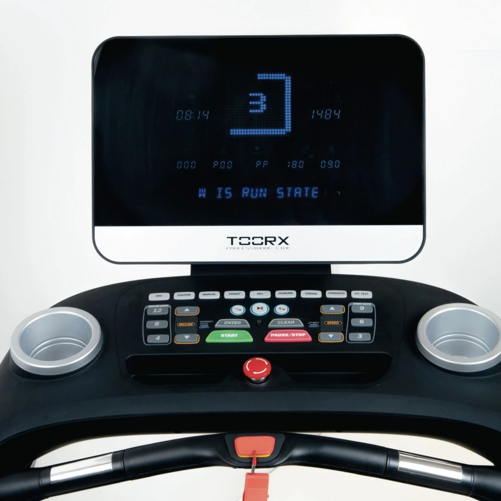 Η κονσόλα του διαδρόμου TOORX TRX-9000 EVO διαθέτει 7 LED οθόνες με μπλε φωτισμό και μία επιπλέον οθόνη διαγράμματος, προσφέροντας καθαρές και ευδιάκριτες ενδείξεις. Παρέχει πληροφορίες για ταχύτητα, χρόνο, απόσταση, θερμίδες, κλίση, παλμούς, βήματα και θερμοκρασία, εξασφαλίζοντας πλήρη έλεγχο της προπόνησής σας. Με 8 προ-εγκατεστημένα προγράμματα, λειτουργία HRC για έλεγχο παλμών, 1 χειροκίνητο και 5 εξατομικευμένα προγράμματα, καλύπτει κάθε ανάγκη και στόχο εκγύμνασης.