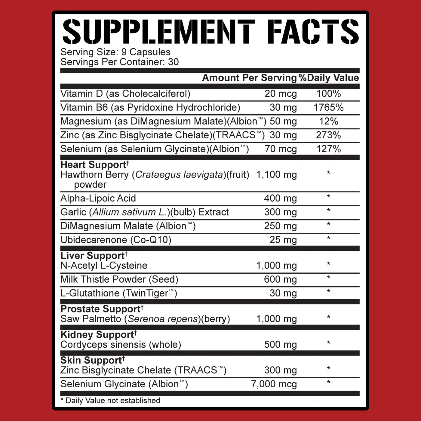 Το ήπαρ ζυγίζει λίγο πάνω από 1,5 κιλά. Έχει περίπου το μέγεθος μιας μπάλας ποδοσφαίρου. Επίσης, είναι το μεγαλύτερο ζωτικό όργανο στο σώμα. Ελέγχει εκατοντάδες χημικές δράσεις στο σώμα. Σε σύγκριση με τον μέσο άνθρωπο, οι bodybuilders ασκούν μεγάλη πίεση στο συκώτι τους. Αυτό οφείλεται στην επιθετική χρήση συμπληρωμάτων. Οφείλεται επίσης στην υψηλότερη από το κανονικό πρόσληψη πρωτεΐνης. Το συκώτι πρέπει να φιλτράρει τα πάντα παρά το αυξημένο στρες. Απαντώντας σε αυτό το δίλημμα, το Liver & Organ Defender προάγει την υγεία και τη λειτουργία του ήπατος. Αυτό το εντυπωσιακό προϊόν έχει ένα ολοκληρωμένο σύμπλεγμα συστατικών που ξεπερνά τον ανταγωνισμό.