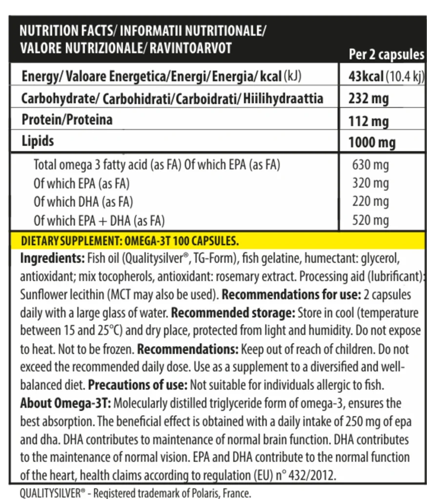 Το Omega-3T προσφέρει την υψηλότερη βιοδιαθεσιμότητα καθώς περιέχει μια μορφή ωμέγα-3 που ονομάζεται τριγλυκερίδιο, τα οφέλη του οποίου υποστηρίζονται από πάνω από 8000 ερευνητικές μελέτες. Το EPA και το DHA, τα οποία βρίσκονται σε αφθονία στο ιχθυέλαιο, είναι απαραίτητα για την φυσιολογική ανάπτυξη, διατηρούν τη λειτουργία του εγκεφάλου και την υγεία της καρδιάς, υποστηρίζουν την υγεία των οστών και των αρθρώσεων και ενισχύουν το ανοσοποιητικό σύστημα.