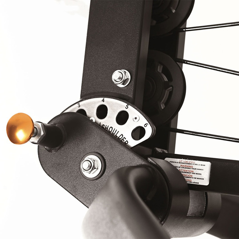 - Ασκήσεις: τρικέφαλοι, κοιλιακοί, έκταση ποδιών, κοιλιακοί με υψηλή έλξη, ώθηση τρικέφαλου προς τα κάτω, έλξη πλατών προς τα κάτω, δικέφαλοι, κωπηλατική με μπάρες καθιστού τύπου, κωπηλατική με τροχαλία καθισμένου τύπου, πιέσεις εμπρός, κλωτσιά ποδιών προς τα πίσω, πιέσεις ώμων καθισμένου τύπου, κωπηλατική σε όρθια θέση, κάμψη ποδιών σε όρθια θέση, κάμψη χεριών.