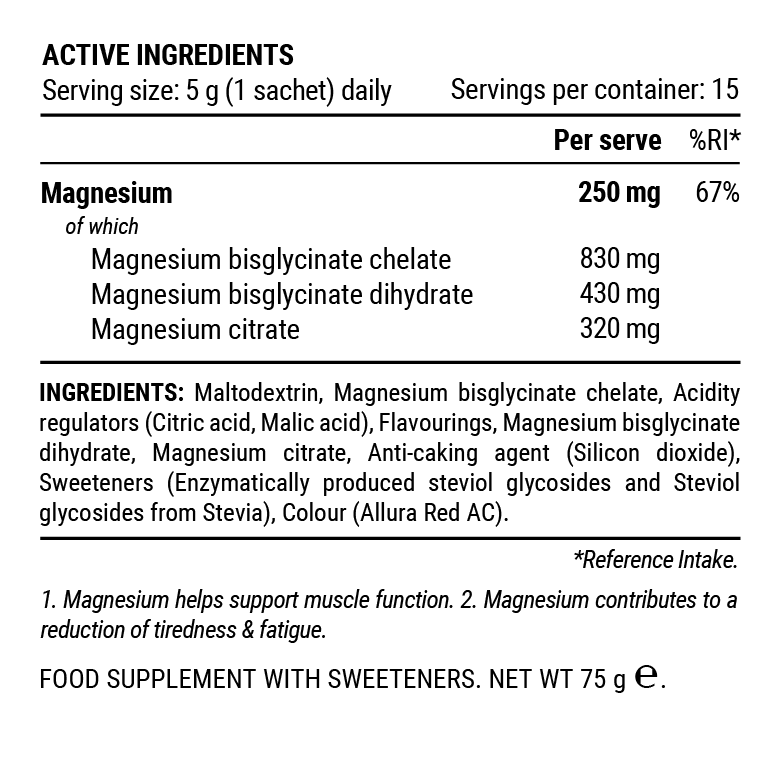 Το Triple Magnesium της PILLAR περιέχει τρεις διαφορετικές μορφές μαγνησίου: Magnesium Bisglycinate Chelate (Χηλικό Δισγλυκινικό Μαγνήσιο), Magnesium Bisglycinate dihydrate (Διένυδρο Δισγλυκινικό Μαγνήσιο) και Magnesium Citrate (Κιτρικό Μαγνήσιο).