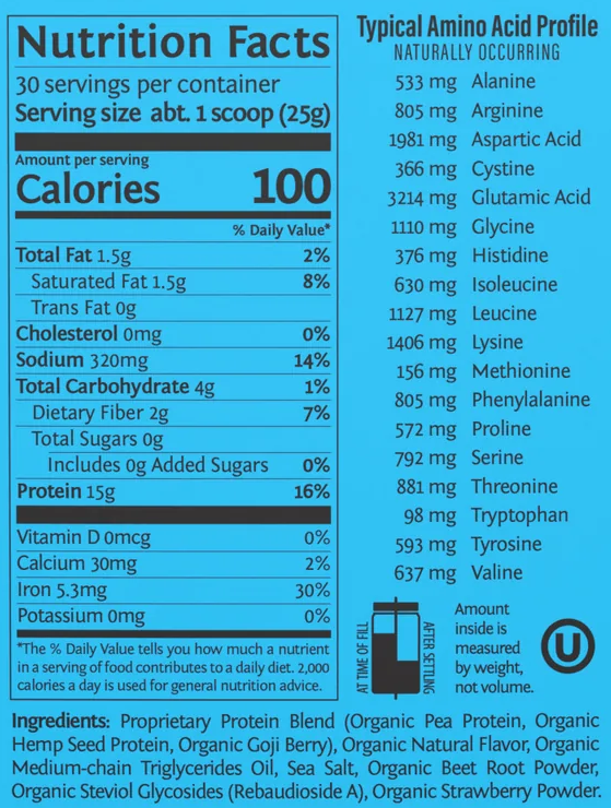 Το Warrior Blend συνδυάζει τη δύναμη των βιολογικών πρωτεϊνών μπιζελιού, κάνναβης και goji σε μια απαλή, νόστιμη σκόνη. Είναι φυσικά πλούσια σε BCAA, υποστηρίζει την αποκατάσταση των μυών και δεν περιέχει γαλακτοκομικά, σόγια και γλουτένη. Η γεύση Berry Shortcake κάνει κάθε ρόφημα απολαυστικό, είτε μετά την προπόνηση είτε ως μέρος της καθημερινής σας διατροφής.