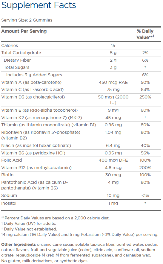 Αυτές οι πολυβιταμινούχες ζελεδάκια παρέχουν βασικά θρεπτικά συστατικά σε ποσότητες προσαρμοσμένες στις καθημερινές ανάγκες υγείας των ενήλικων γυναικών.