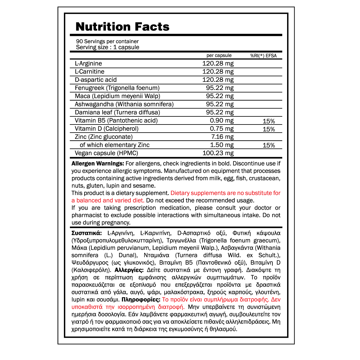 ✔ Ενίσχυση της λίμπιντο & της σεξουαλικής υγείας – Τα Damiana, Maca & Zinc υποστηρίζουν τη σεξουαλική λειτουργία και τη φυσική παραγωγή τεστοστερόνης.